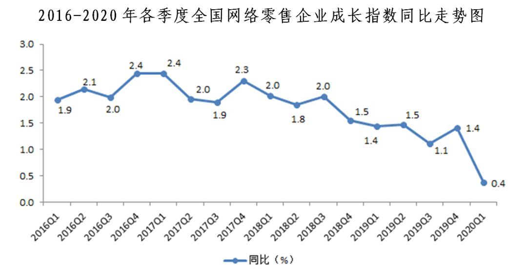 一、網(wǎng)絡零售企業(yè)成長指數(shù)同比增長0.4%,環(huán)比下降1.8%。