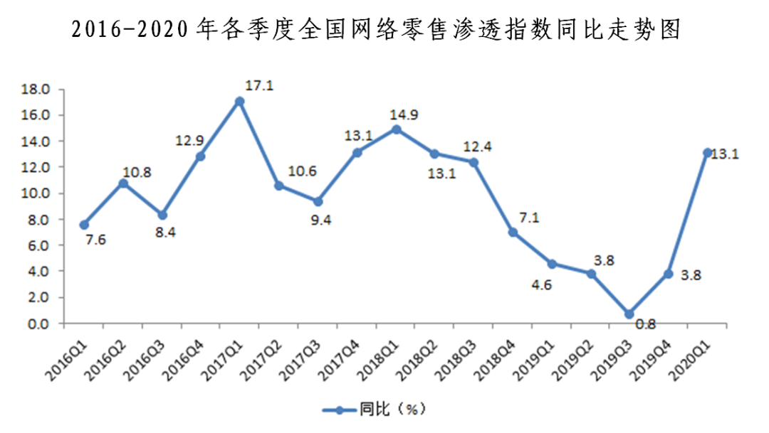 二、網(wǎng)絡零售滲透指數(shù)同比增長13.1%,環(huán)比下降3.3%。