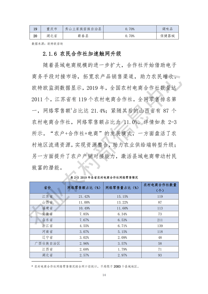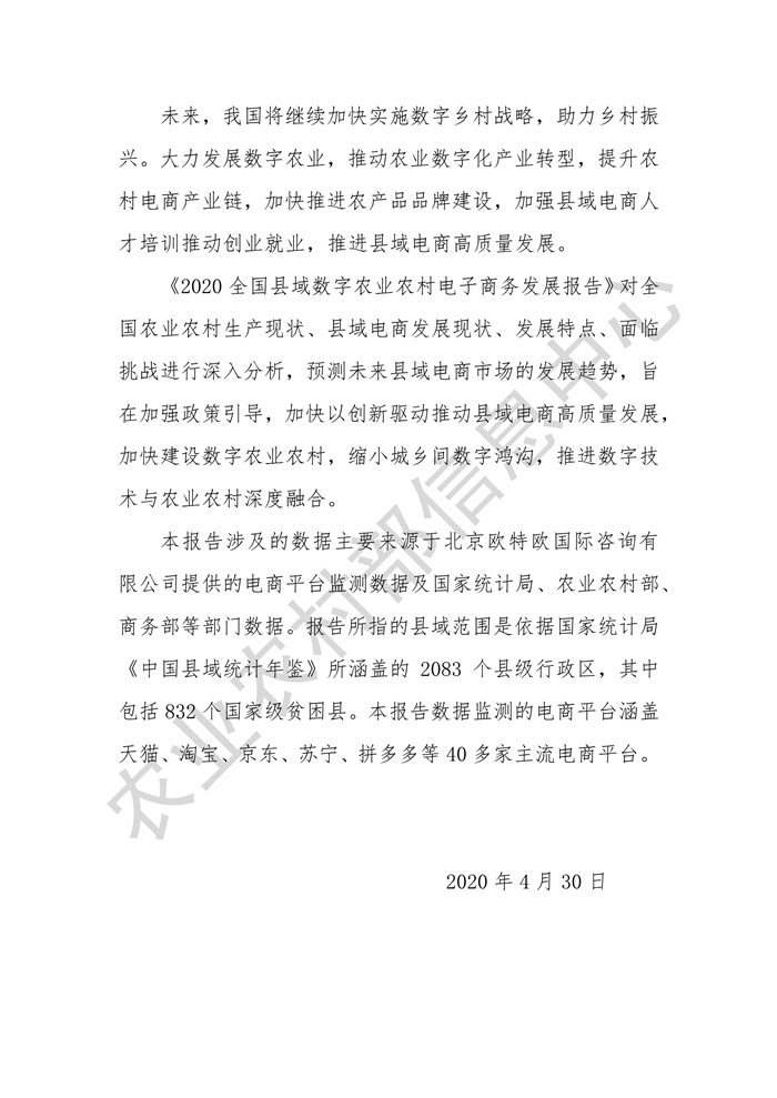 點擊查看完整報告:2020全國縣域數(shù)字農業(yè)農村電子商務發(fā)展報告.pdf